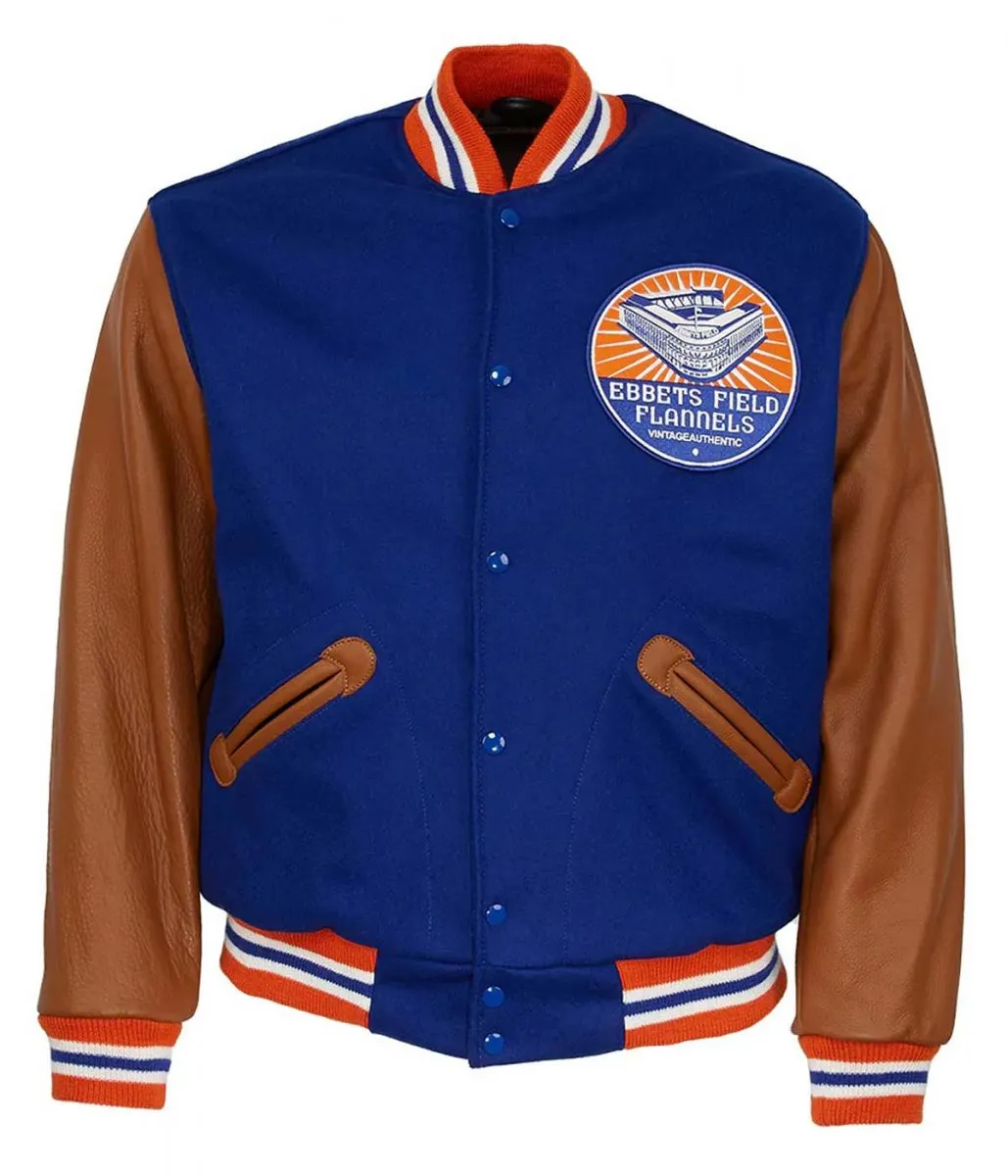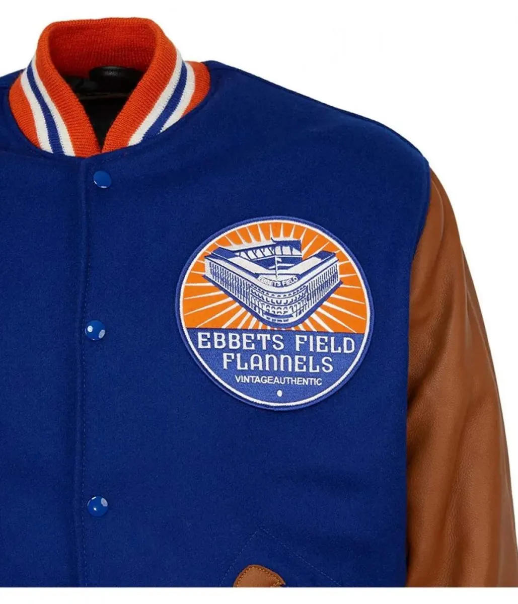 1988 Ebbets Field Flannels Blue and Brown Varsity Jacket