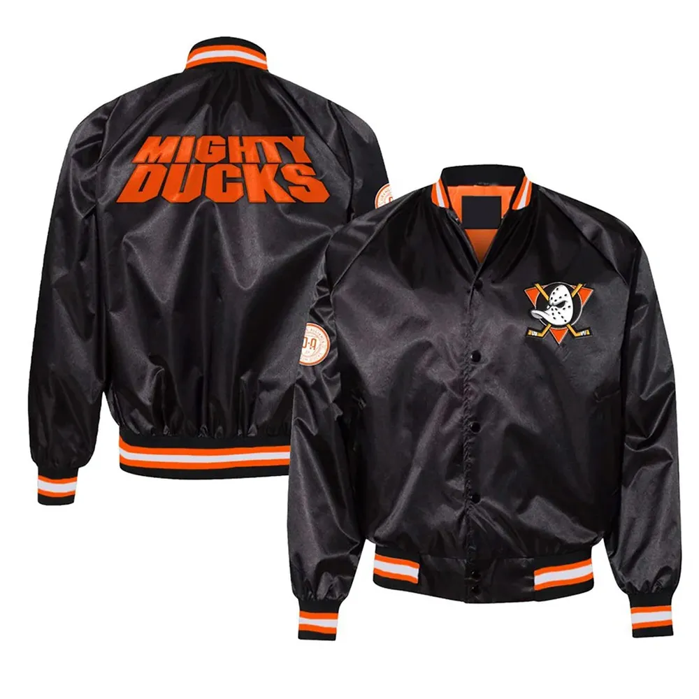 Commence the celebration with the Satin Black Anaheim Ducks 30th Anniversary Jacket. Beyond attire, it’s a tribute to hockey pride and urban cool. From the rink to the streets, each stitch carries the essence of 30 years of triumphs, making it a versatile statement piece. 30th anniversary Anaheim ducks’ jacket, showcasing not just a jacket, but a symbol of sports history and urban style in every detail.